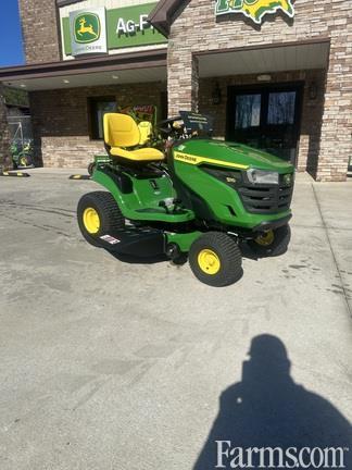 The John Deere S110 is a 100 Series riding lawn tractor designed for residential use, featuring a 19 HP single-cylinder engine, a 42-inch Edge™ mower deck, and a hydrostatic transmission with side-by-side pedals. It is suitable for lawns up to 1 acre, with a durable,, 12-gauge steel frame and a comfortable 15-inch open-back seat. Call or text Andy 470*718*5755