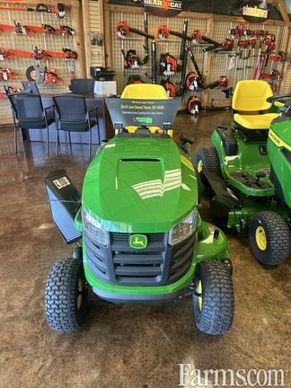 The John Deere S120 is a residential riding lawn tractor featuring a 22 HP V-twin engine, 42-inch Edge™ mower deck, and hydrostatic transmission with side-by-side pedals. It is designed for 1-3 acre properties, offering a 30-second Easy Change™ oil system, 15-inch open-back seat, and a 2-year/120-hour warranty. Call or text Andy 470*718*5755