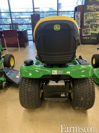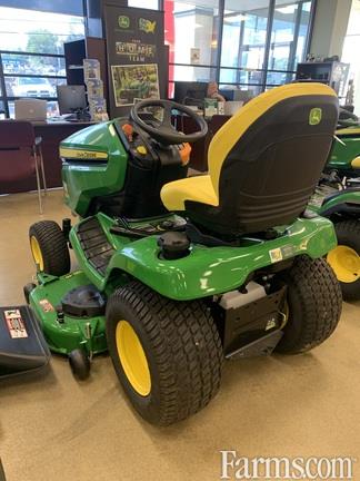 The John Deere X390 is a premium lawn tractor featuring a 23-hp (17.2-kW) Kawasaki FR691V engine, K58 hydrostatic transmission, and hydraulic power steering/deck lift. It offers a 48 inch Accel Deep™ deck, a 3.3-gallon fuel tank, and a 4-year/300-hour warranty, suitable for 1-2 acre properties. Call or text Andy 470*718*5755