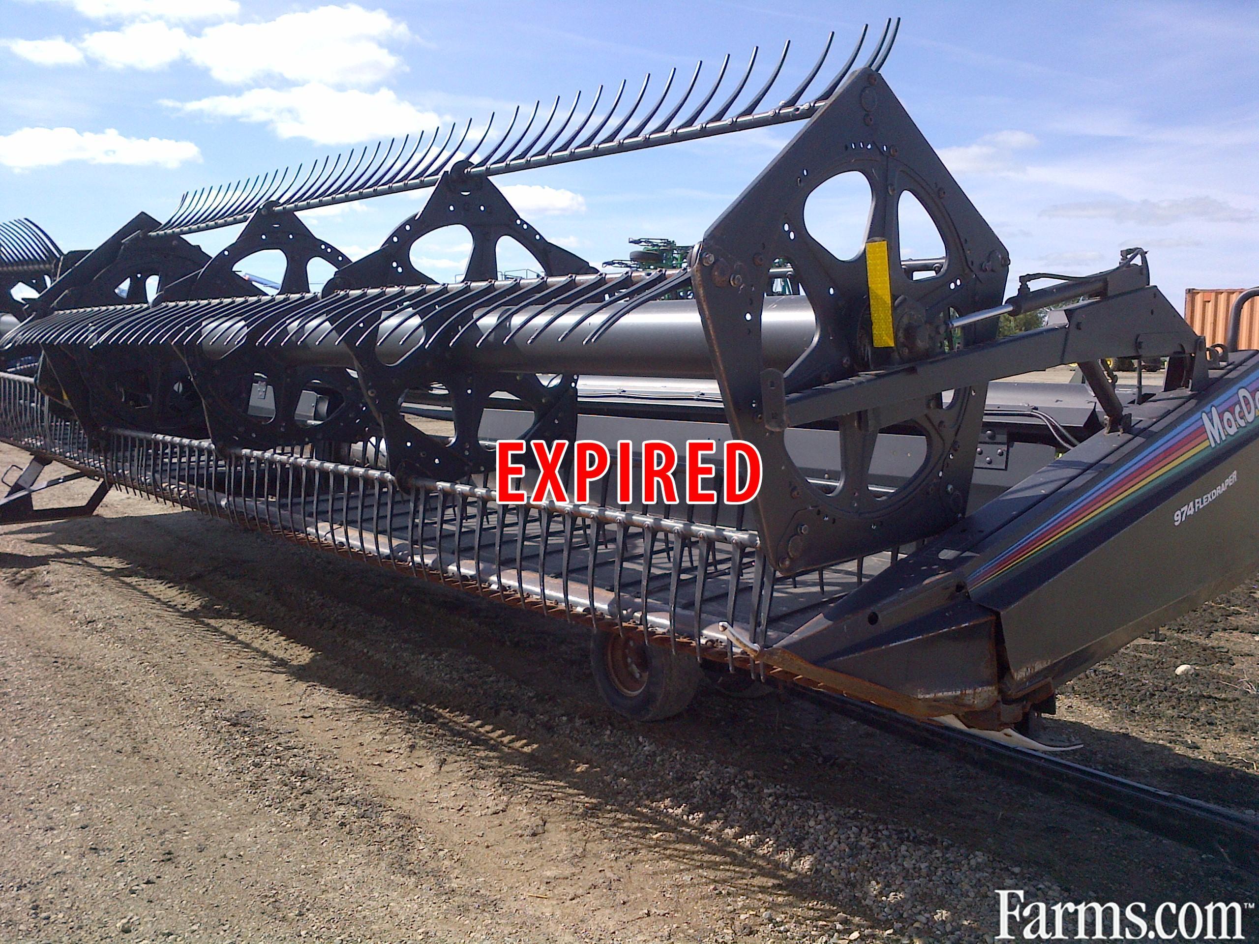 2005 MACDON 974 30' FLEX DRAPER HEADER, SPLIT REEL, SLOW SPEED TRANSPORT, 873 ADAPTOR S/N 164909-05, WARR: NO WARRANTY, Platform size: 30 Feet, Platform Kind: Flex/Draper, split reel, slow spd trans, 873 adaptor,came off 9650sts, multi point hyd hook up, CAME OFF 9650STS, MULTI POINT HYD HOOK UP
