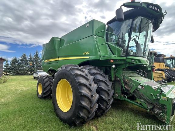 2014 John Deere S680, Small Grain, 2WD, Premium Cab, Enhanced Air Suspension Seat, HID Lighting Package and Header Extremity Lights, Premium Radio Package with XM Radio, AutoTrac Ready with Harvest MonitorTouch, screen GS3 CommandCenter 7 In. Colour Display, ProDrive Transmission with Harvest Smart Feedrate Control, 110kW Heavy Duty Tilt Cylinder, High Torque Fixed Speed Drive System - 3.15 In. (80 mm) Lift Cylinders, Large Wire Concave, S-Series Cleaning Shoe General Purpose Dual Adjust Chaffer and Sieve with TouchSet, Variable Stream Rotor Configuration Regular Wear, 26 Ft. (7.9M) Unloading Auger, Fine Cut Chopper - Advanced PowerCast powered tailboard with In-cab operator controlled wind compensation, 750/65R26 (Firestone or Michelin), 650/85R38 R1W Duals 173A8 (Firestone or Michelin), Final Tier 4 Certified Engine, Heavy Duty Separator Grates, Engine Coolant Heater - 110 Volt, Sectionalized Concave Cover Plates (Set of 3 covers with 4 pieces to make one complete cover) for Large Wire and Small Wire and 615P Header (s/n 1H00615PVE0765602).