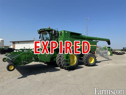 2017 John Deere S680, 615P Pickup, Tough small grains pkg, LED lights pkg, 7” command center, No additional displays, AutoTrac activation, No receiver, ProDrive transmission, Active terrain adjust, Contour master feeder house, Variable stream rotor, 28’ unloading auger, Power folding hopper, Advanced PowerCast tailboard, 580/85/42 duals front, 750/26 rears.