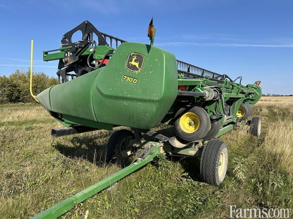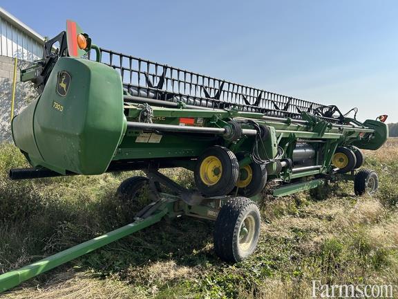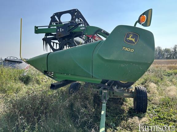 2020 JOHN DEERE 730D, DUAL KNIFE DRIVE, POLY TINE PICKUP REEL, CUTTERBAR POLY SKID SHOES, CENTER SECTION 14" FEED DRUM AND HORST TRANSPORT CHCF30 (S/N 1401607)
