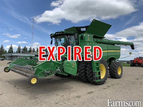 2021 John Deere S780 combine with premium cab, 615P pickup header, Combine Advisor package, Gen 4 4600 display with extend monitor and Premium Activation 3.0, 26 foot unloading auger, and Advanced PowerCast straw chopper.