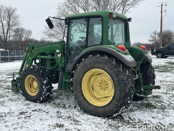 2009 John Deere 6430 Premium Utility Tractor – 4448 hours, MFWD, premium cab, AutoQuad Plus 24F/24R 40 km/h transmission, 540/1000 PTO, air-comfort suspension seat, deluxe exhaust, 3 deluxe rear SCVs w/ couplers plus loader package (M-ICV 2-function), adjustable rear wheels, rear 18.4R34 R1W / front 14.9R24 R1W tires, fuel tank bottom guard, side extensions, tool box, base weight, cold start package, telescoping rear-view mirrors.