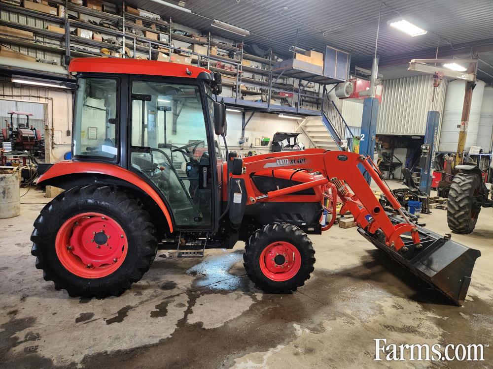 Used 2009 Kioti DK50CHSE Tractor and KL401 Loader, s/n JH2300044, 50 hp, 457 hrs, diesel, 4wd, tires 80% F 8-16, R 13.6-24,and rear remote. In excellent condition! Consignment - no tax!